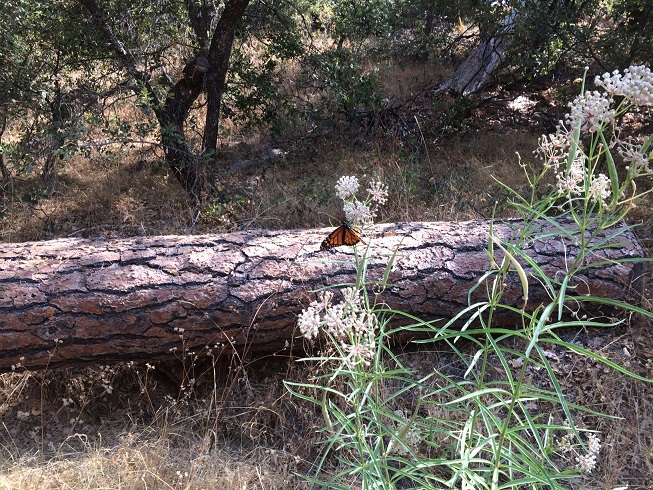 Monarch butterfly on Narrowleaf Milkweed plants. Photo copyright © 2018 Mariposa Native Plants.